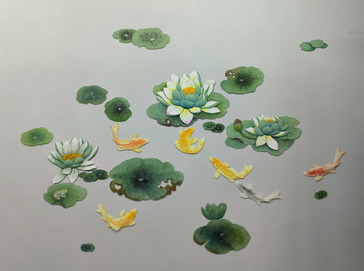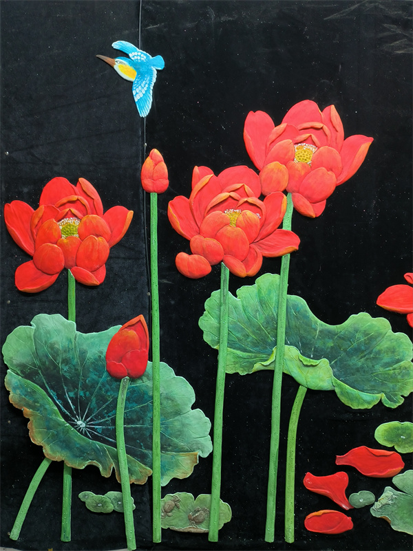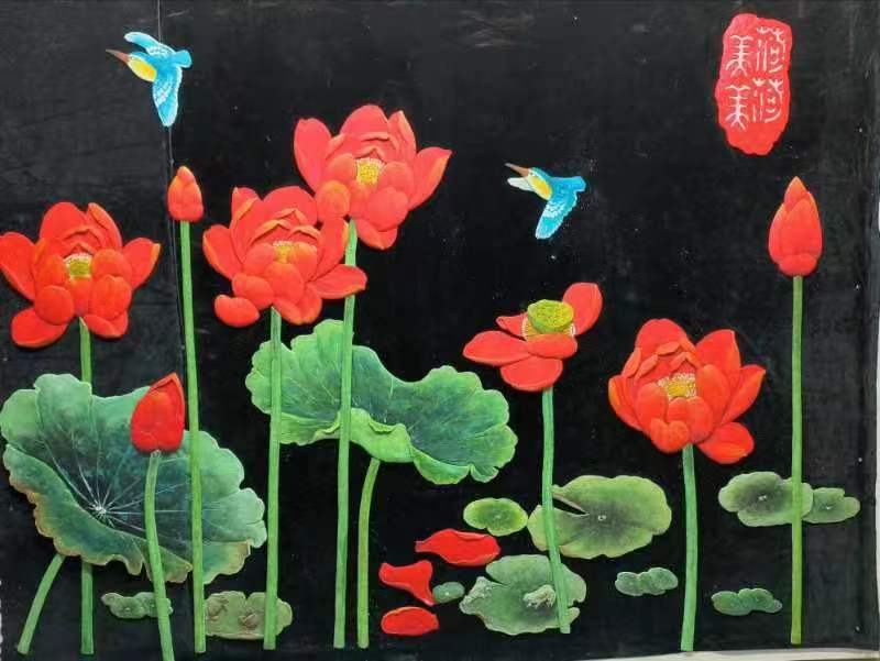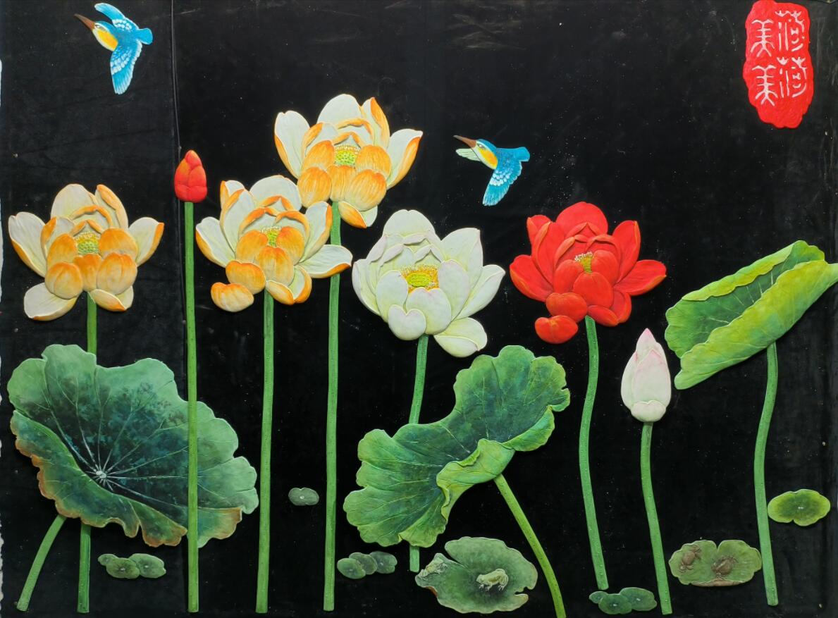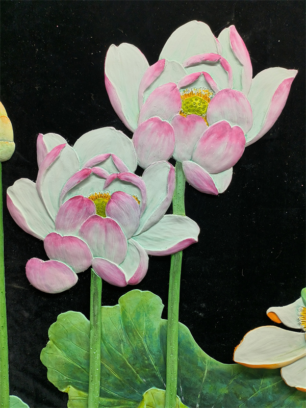 硅澡浮雕图案大莲花品面粘帖画