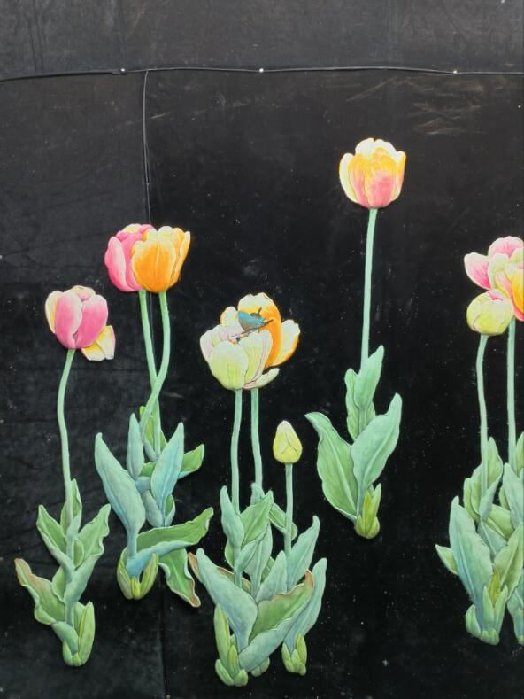 乳胶漆浮雕雕刻大玉兰花平面磨贴标画
